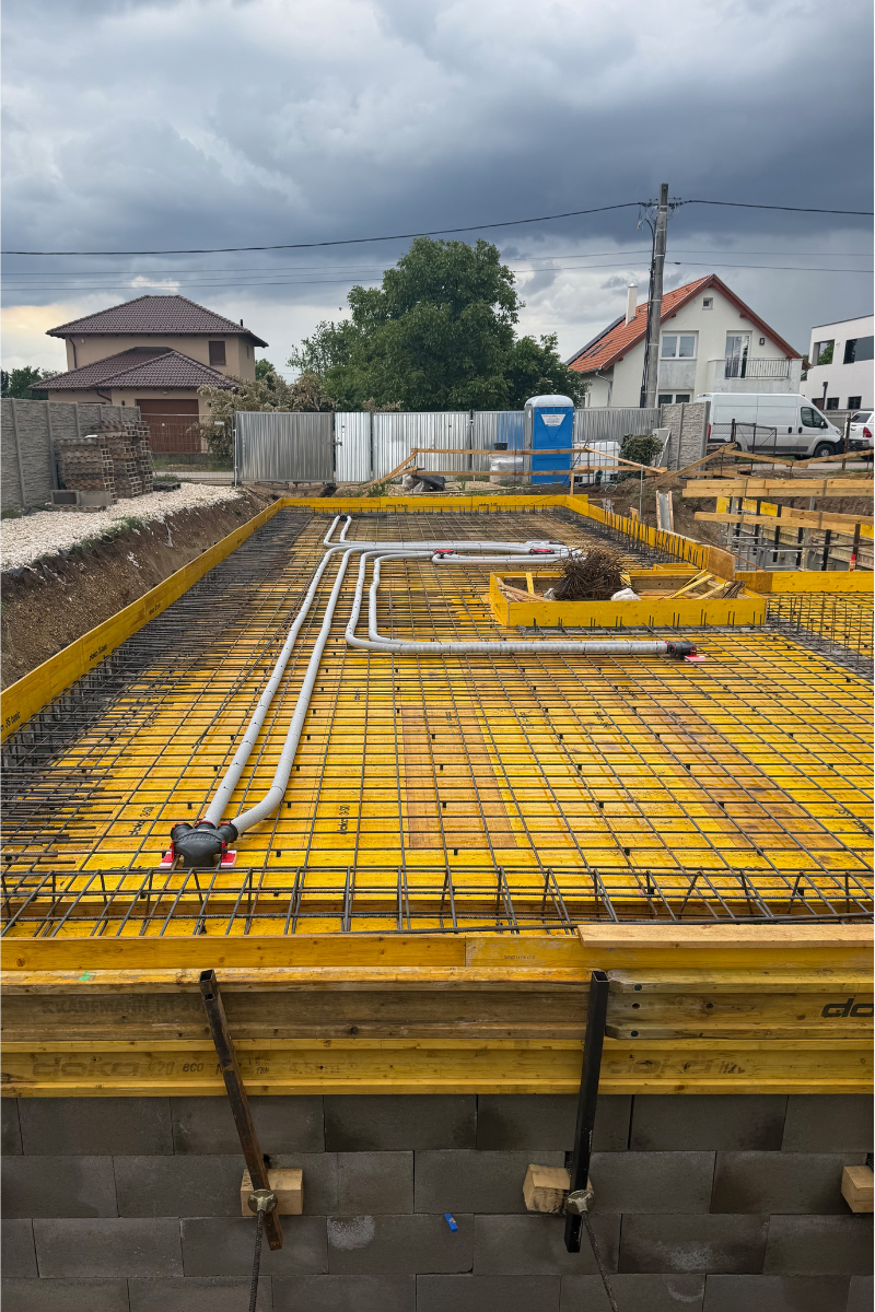 A képen a betonozás előtti fázis látható: az antibakteriális, lépésálló légcsatornák precíz rögzítése a vasalaton. A technológia később láthatatlan marad, helytakarékos és teljesen zajtalan.
